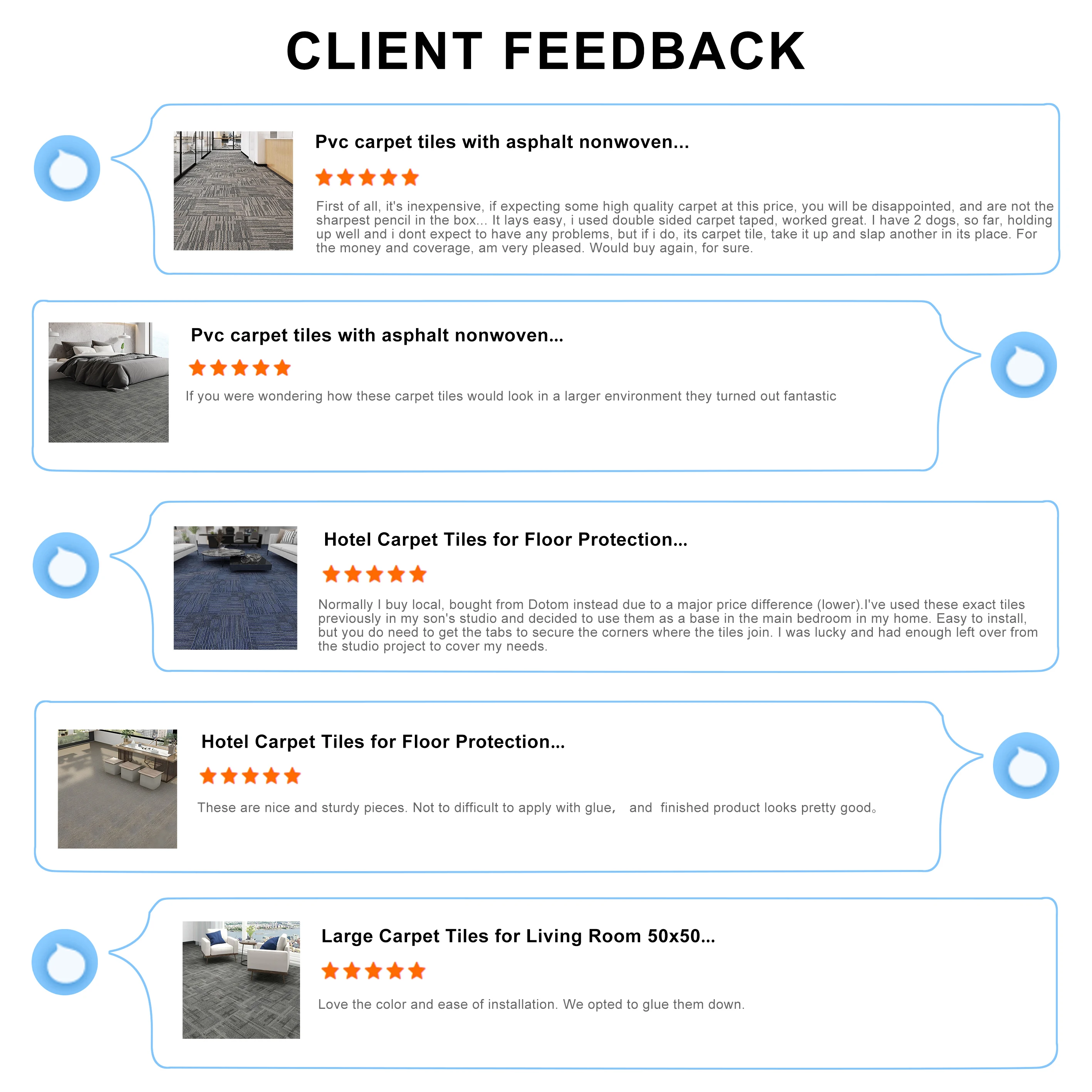 Tailored for professional scenarios (offices, corporate lobbies, meeting rooms, etc.), these carpet tiles combine functionality with aesthetic versatility: their modular 50×50cm size allows flexible layout adjustments, while the modern design (paired with diverse texture/pattern options) complements contemporary interior styles.