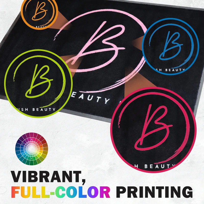 We use high-precision spot inkjet printing machines imported from Austria to deliver crisp, vivid custom logos and designs, supporting up to 12 colors selected from the Pantone solid coated system (including white and black) for perfect brand color matching. Hot-selling sizes cover 40×60cm, 60×90cm, 80×120cm and 90×150cm, while custom designs and sizes are fully available, with a maximum dimension of 200cm×1200cm to meet unique spatial needs. Ideal for retail stores, offices and public venues, these mats effectively protect floors, reduce slip risks and elevate brand image simultaneously.