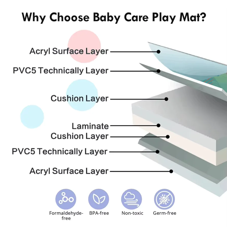 EASY TO USE:This baby activity mat conveniently folds quickly and easily for playtime at home,school,daycare,or anywhere baby needs;When playtime is over, the mat wipes clean with a damp cloth.