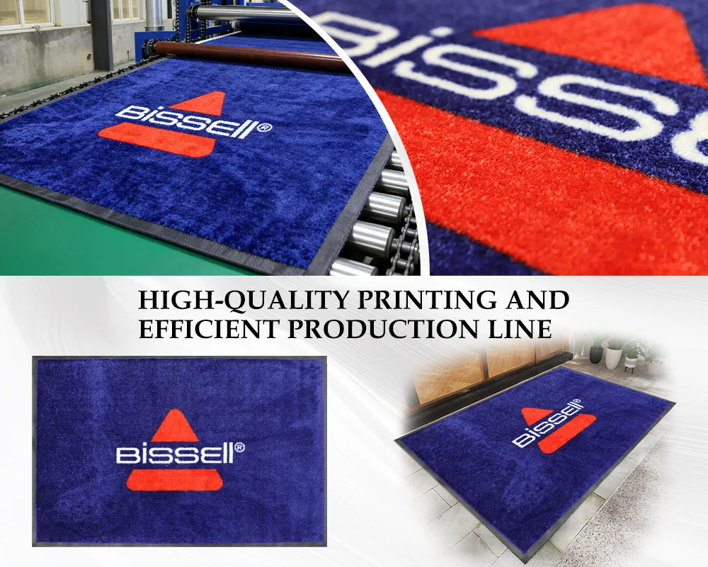 This customizable mat product is available in four models (DK-2450, DK-2000, DK-2200, DK-2300), with surface materials covering 450gsm tufted nylon and 600/700/950gsm twisted nylon that correspond to surface thicknesses of 3mm to 6–7mm; all models are equipped with 2000gsm rubber backing, resulting in total thicknesses ranging from 5mm to 8–9mm and price grades classified as low, medium and high. It adopts high-precision spot inkjet printing equipment imported from Austria, supports 12 color options selected from the Pantone solid coated system (including white and black) for custom logo and pattern printing, offers hot-selling sizes of 40×60cm, 60×90cm, 80×120cm and 90×150cm, and also provides flexible custom design and size services with the maximum customizable dimension reaching 200cm×1200cm, suitable for making floor mats, desk pads and gaming mouse pads.