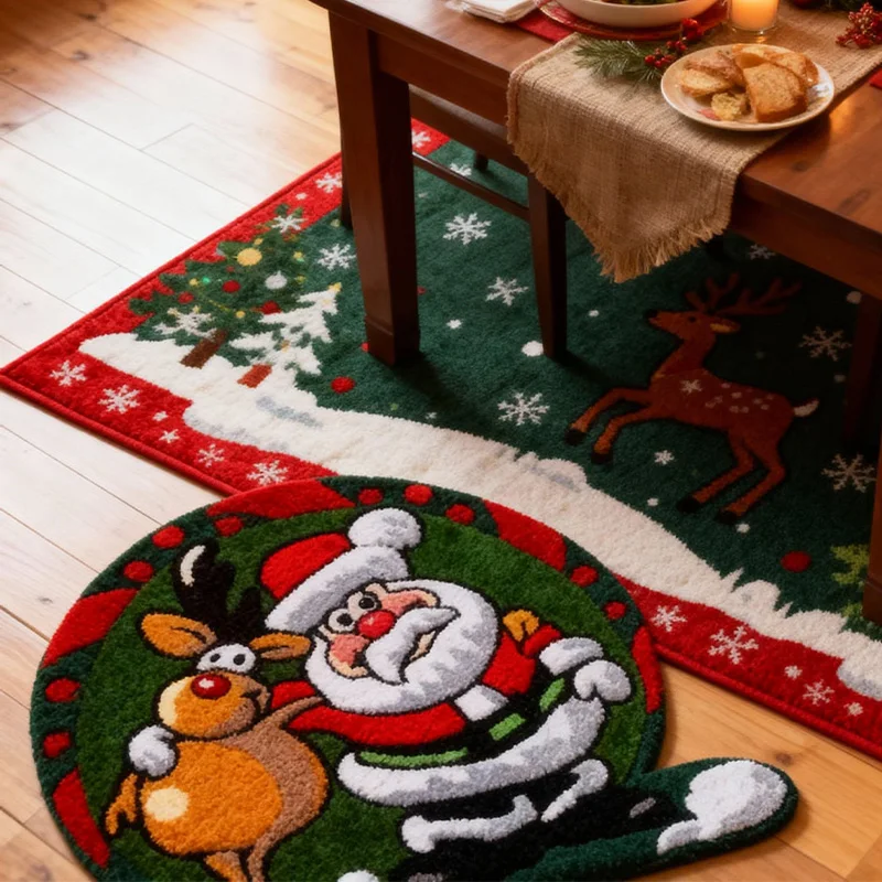This Entry Door Mat is an ideal choice for modern home decor, perfectly blending functionality with aesthetics. As a woven carpet, it is made from high-quality polyester fiber, ensuring exceptional durability and long-lasting shape stability. Its unique Christmas-themed printed design adds a festive touch to your entryway or living room, making it an excellent option to elevate the style of your contemporary living space.