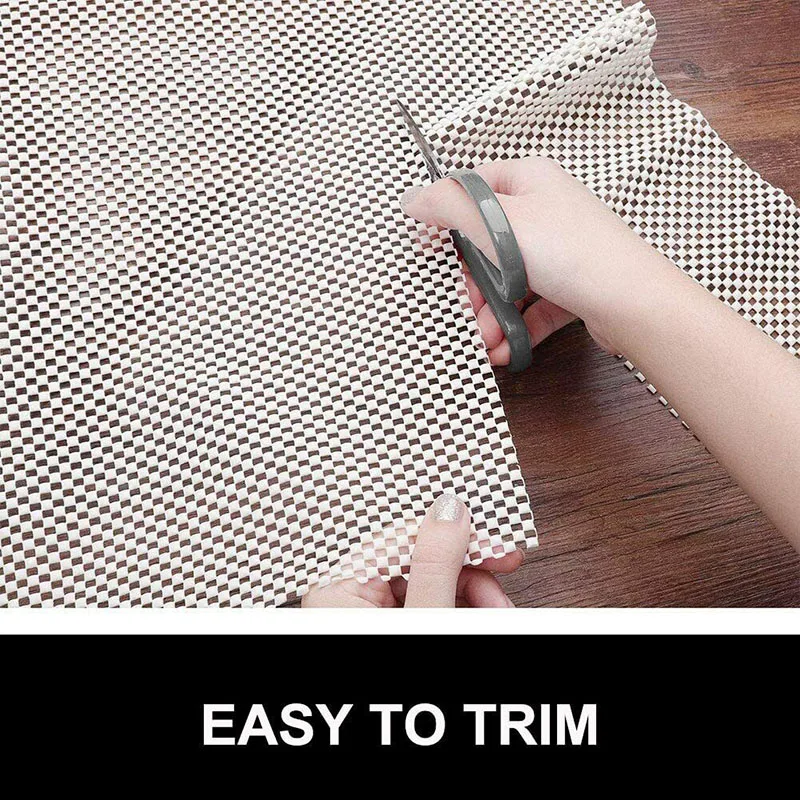 1) Keeps rugs safely in place; 2) Prevents rugs from buckling; 3) Protects wooden floors from scuffing; 4) Makes vacuuming easier; 5) Superior grip strength; 6) Care instructions for anti slip mat:Cut to size with scissors and wash by hand at 40'U. |