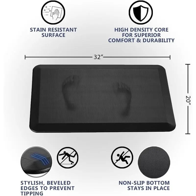 This hot-selling PU anti-fatigue kitchen mat is a perfect blend of comfort, safety, and practicality for busy cooking spaces. Crafted from high-quality polyurethane, it features a dense, cushioned core that effectively reduces pressure on your feet, knees, hips, and lower back during prolonged standing . The ergonomic design promotes natural blood circulation, easing muscle fatigue and making meal prep or dishwashing far more comfortable .