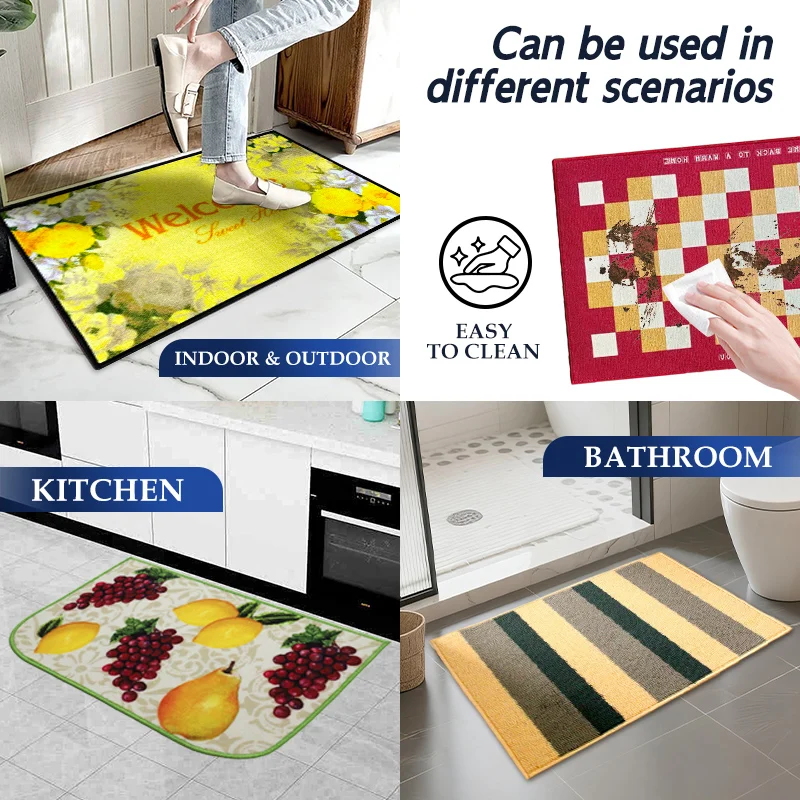 This doormat features a 100% soft woven polypropylene surface paired with a high-quality natural rubber border and backing, designed with a heavy-duty structure (including a moisture-retention dam) for long-lasting durability against harsh outdoor elements—like rain, dust, and sunlight—and constant frequent foot traffic. It offers practical functions like efficient impurity removal (trapping dirt, sand, and debris), hassle-free easy cleaning (shakable, sweepable, or rinsable), and gentle comfortable bare-foot use even for sensitive feet, with stylish, texture-rich hot-selling patterns (e.g., DK-CRM01 to DK-CRM06) and flexible available sizes including 40×60CM, 45×75CM, 60×90CM, 90×150CM, 120×180CM. Custom doormats are supported via a smooth, customer-centric 5-step process (consultation → proofing → order confirmation → production → delivery), and it suits versatile daily scenarios such as front/back doors, laundry rooms, garages, and pet activity areas (like feeding or play zones).
