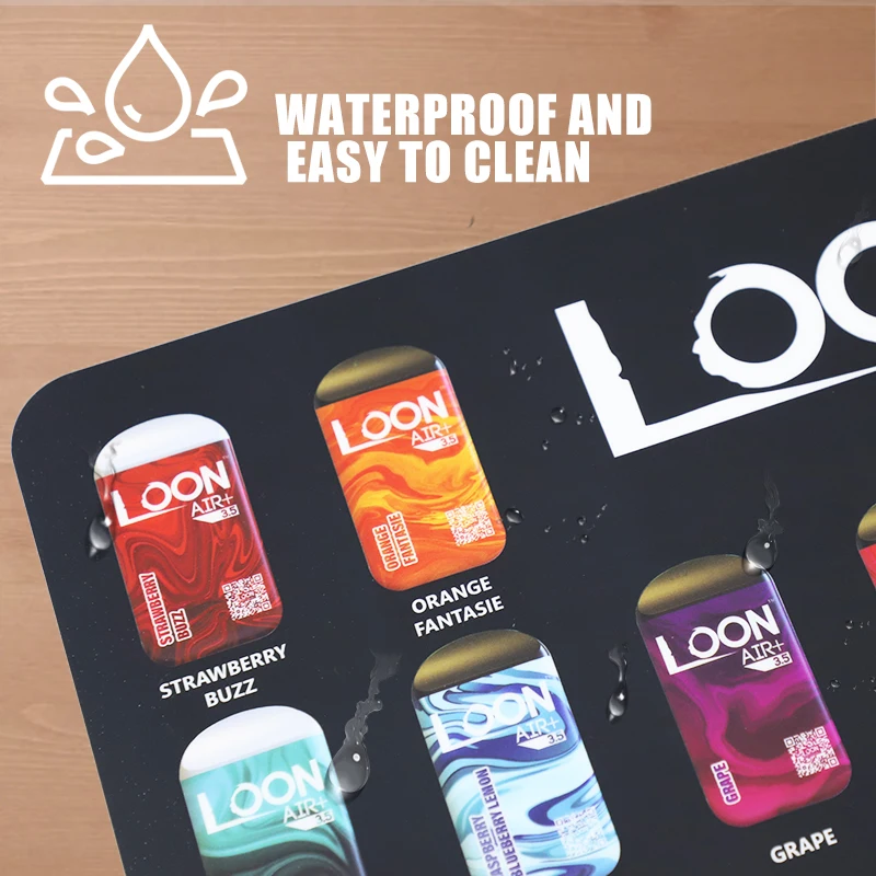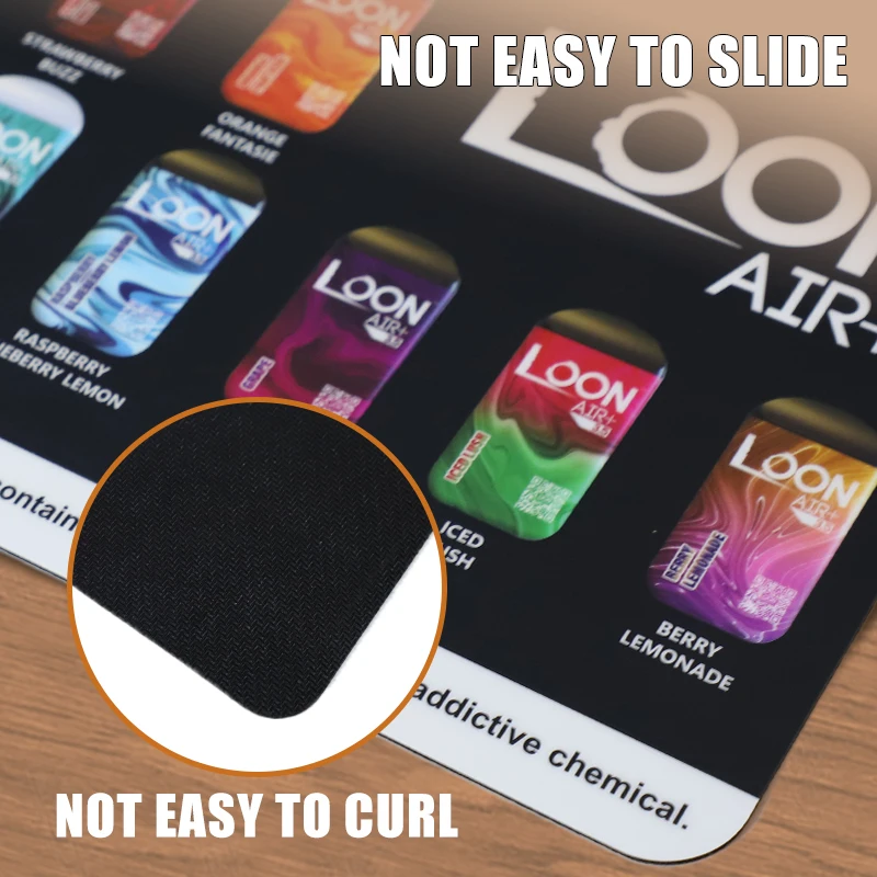 Designed for promotional versatility, it supports custom print capabilities (ideal for brand logos, product visuals, or promotional messages), turning ordinary counter space into a targeted advertising area that captures customer attention. Its smooth PVC surface is waterproof and easy to clean: spills, dust, or scuffs can be wiped away quickly, maintaining a crisp, professional look through daily retail use.