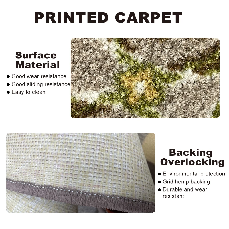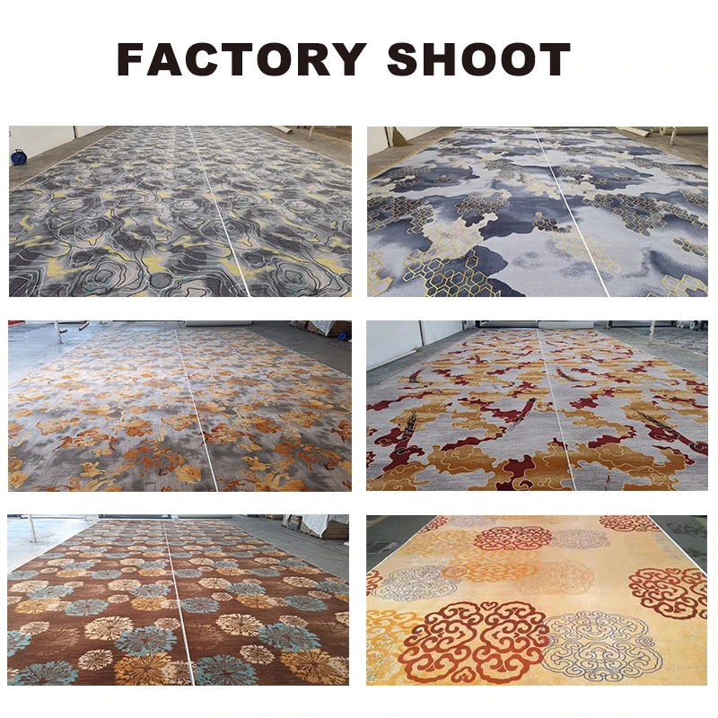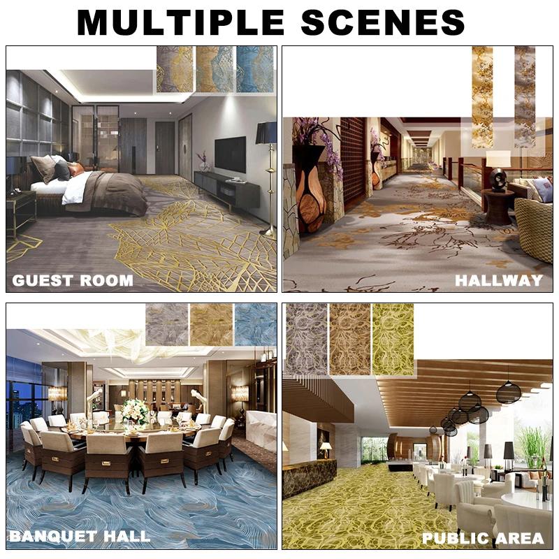 It has practical advantages such as easy cleaning, ground fitting, and sufficient thickness. The easy-to-clean surface allows for quick maintenance, while the sufficient thickness provides excellent sound insulation and shock absorption, creating a quiet and comfortable environment. The product supports full layout design, with rich pattern styles including traditional patterns, geometric textures, and abstract designs, which can be customized to match the decoration style of different spaces. It is suitable for home decoration, hotel rooms, banquet halls, office buildings, and other public scenes, adding a touch of elegance and comfort to any environment. The factory is equipped with advanced production equipment, ensuring high production efficiency and product quality. We can provide a variety of styles to choose from, which not only meets the aesthetic requirements of decoration but also meets the durability needs of high-traffic places. Whether it is a commercial space or a residential area, our carpet is an excellent choice that combines beauty and practicality.